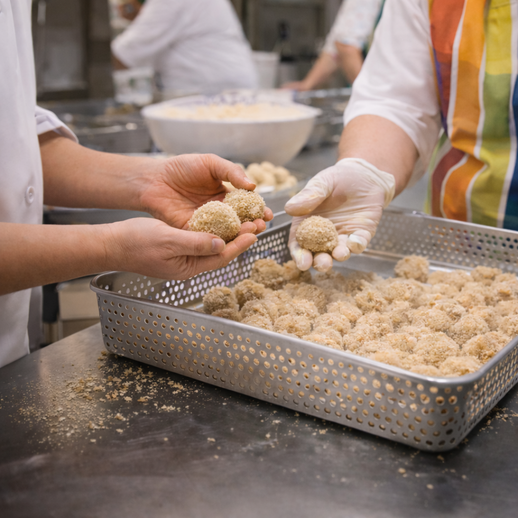 Il nostro lavoro parte dal territorio e dalle persone. Produciamo specialità come olive all’ascolana, olive di pesce, mozzarelline fritte e cremini all’ascolana, mantenendo viva la cultura gastronomica locale e trasformando ogni fase produttiva in un’occasione di crescita e dignità.